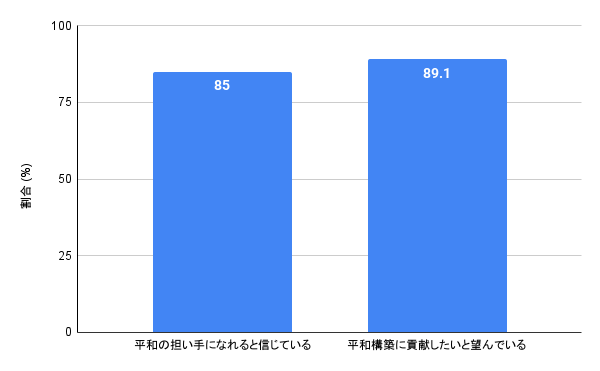 今回の調査において、大多数のYANSAGが「平和の担い手」になりたいという強い願望があることがわかりました。