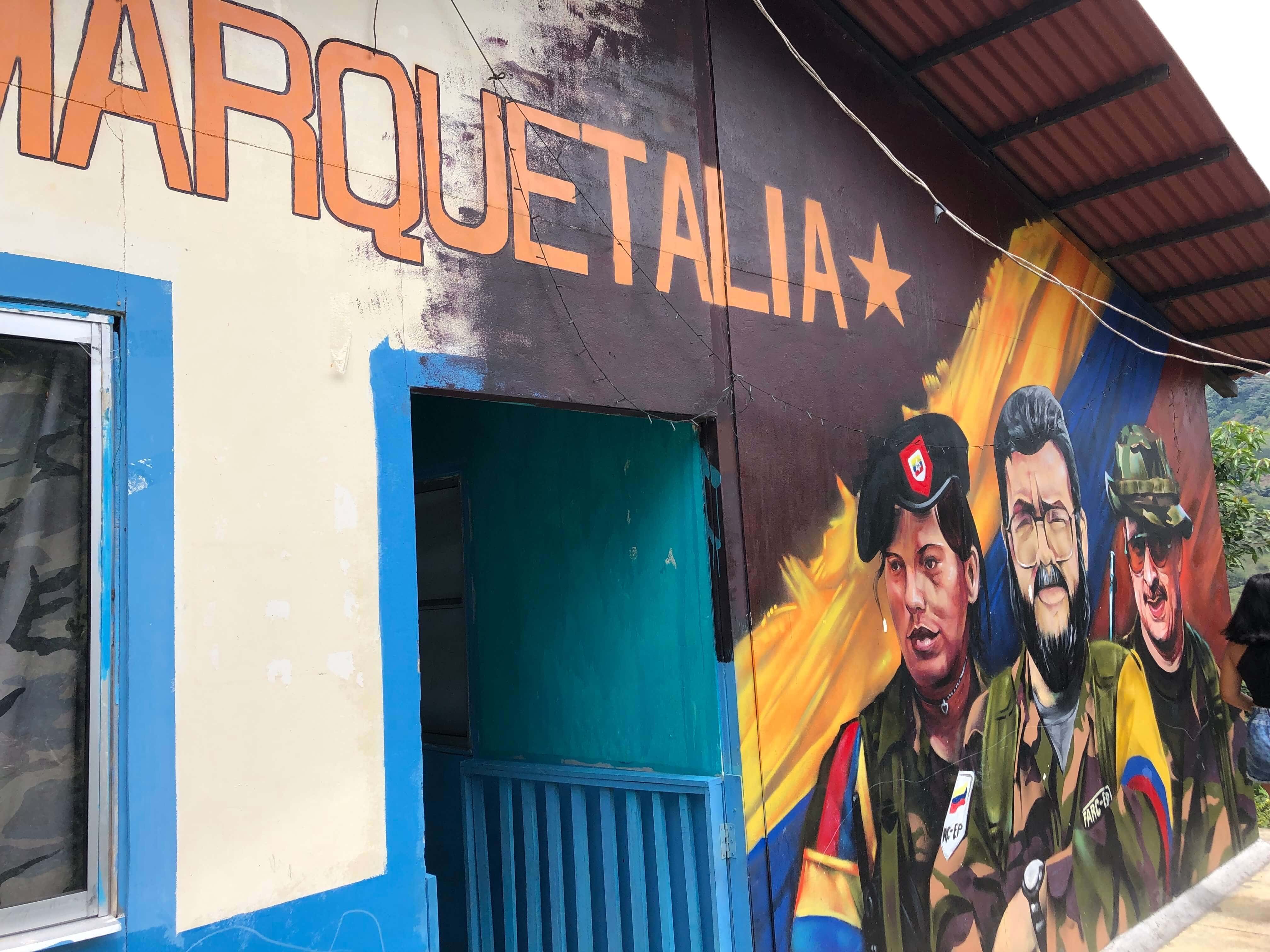 ▲ Murals of the Revolutionary Armed Forces of Colombia (FARC) still remain on houses in the area