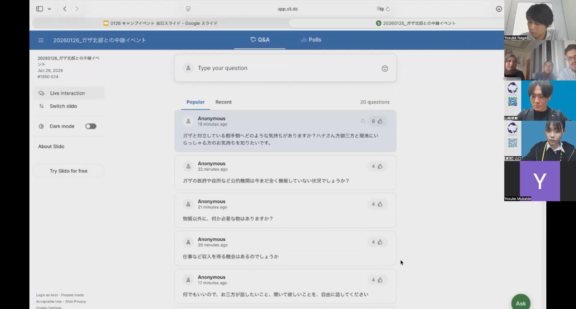 去る1月26日、ガザ北部の避難民キャンプとの中継イベントを開催いたしました。
