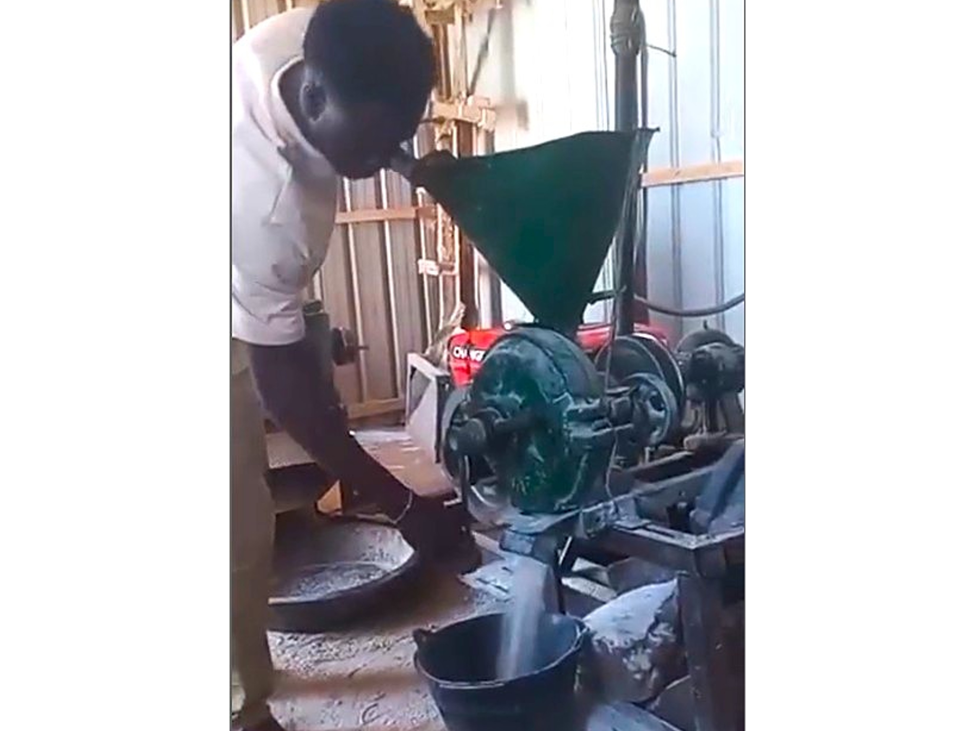 彼はトウモロコシを粉砕してコーンミール(粉末)を販売しています